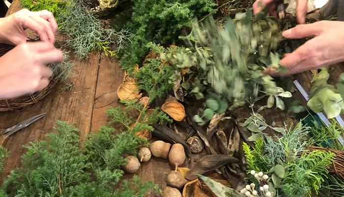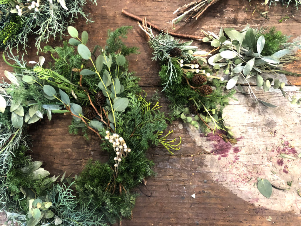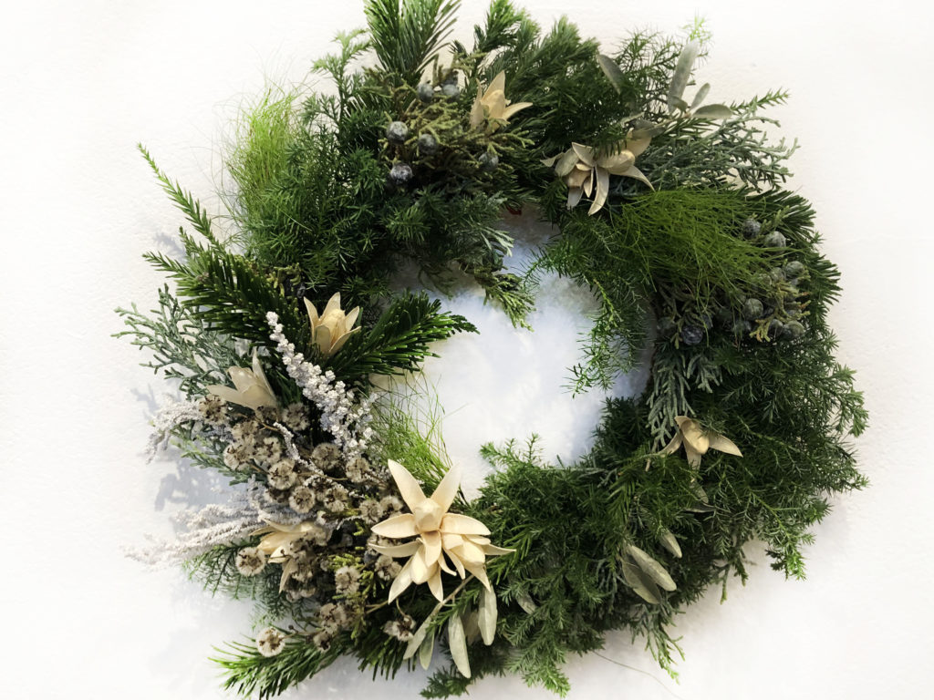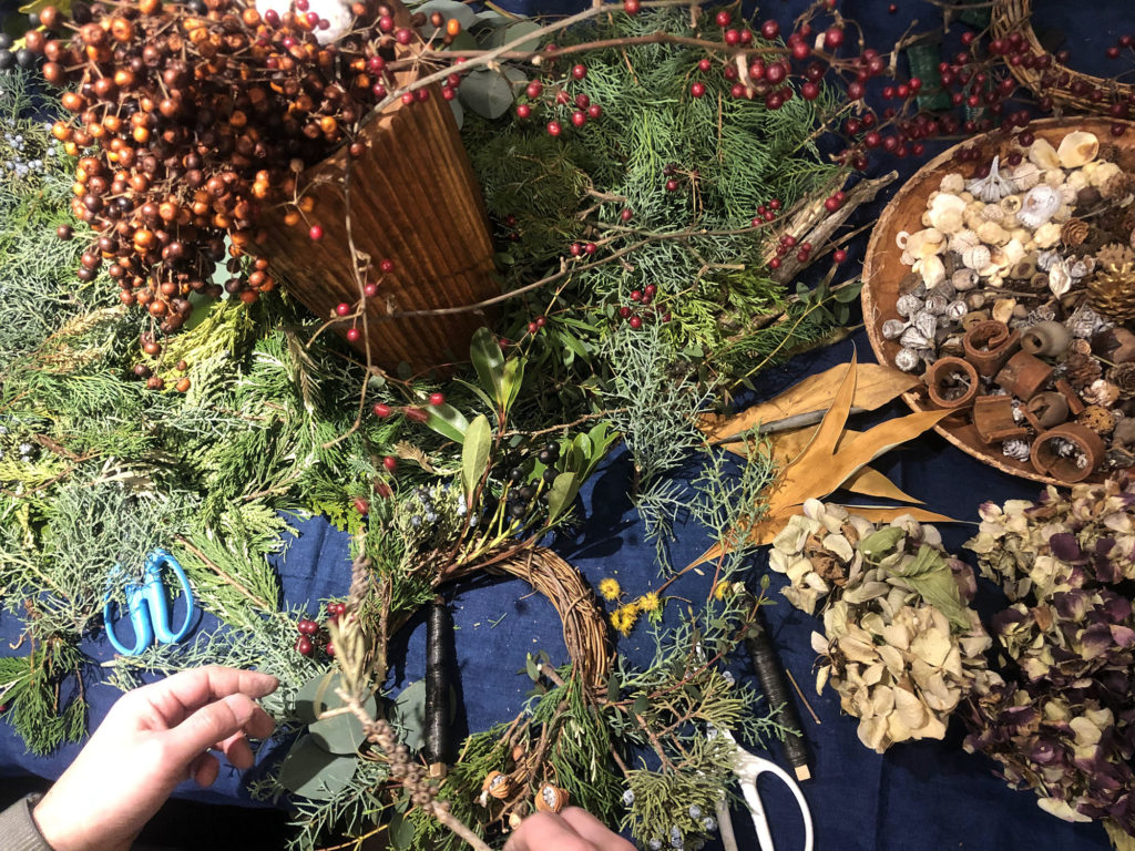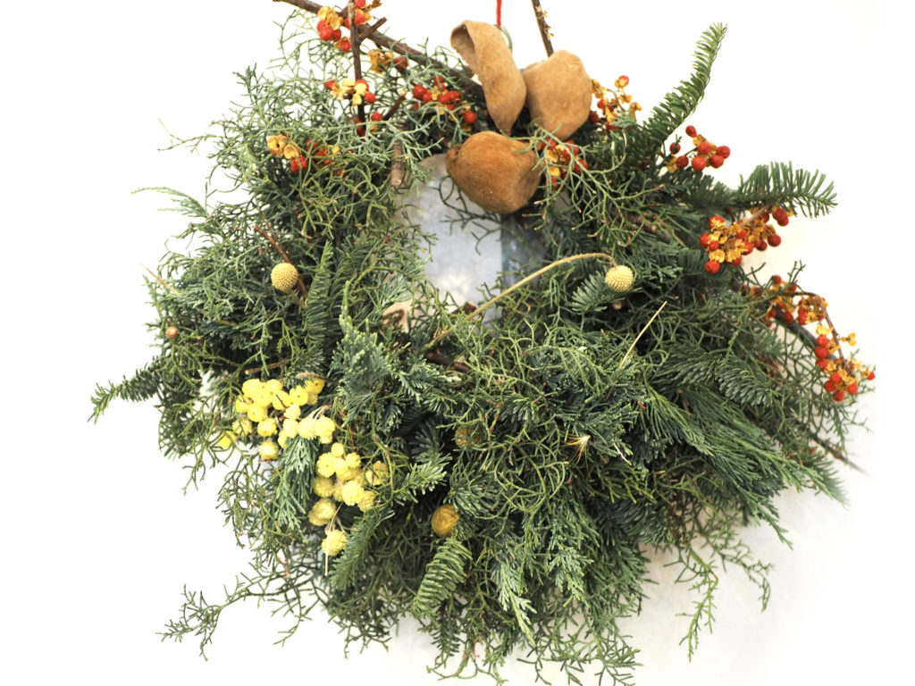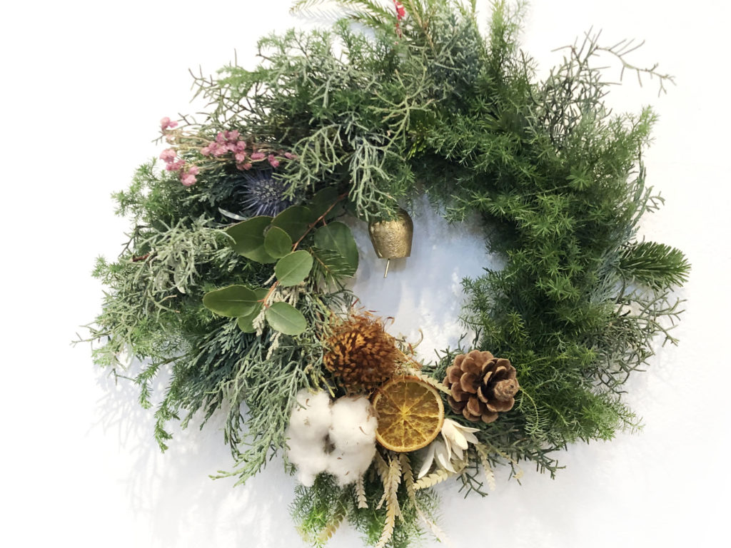 クリスマスまでと、クリスマスからお正月までの祝祭シーズンを楽しめるリースを作るワークショップです。どんなリースが好きですか?