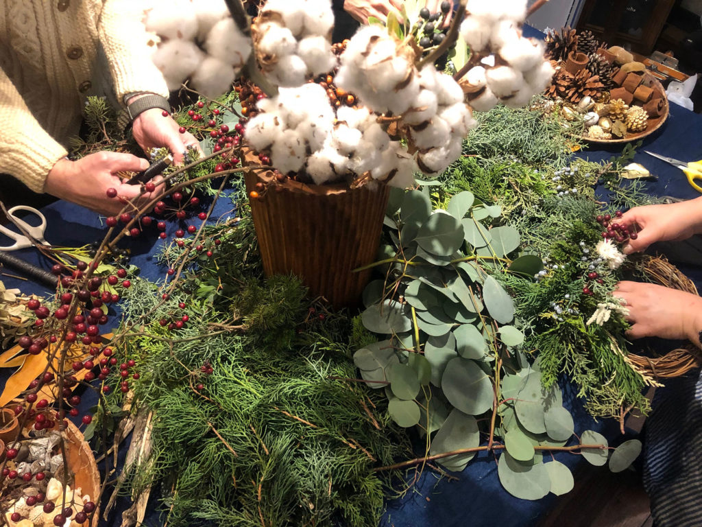 クリスマス用にはカラフルなリボンやオーナメントで自分好みに飾り付けましょう。クリスマスが終わったら、リボンを水引きにつけ替えたりしてお正月らしいお飾りをプラス。モリモリとお好きなアイテムを盛って自分好みのリースを作りましょう。お気に入りのオーナメントなどご持参ください。綺麗に見えるように装着するポイントや方法など、教えていただけます。